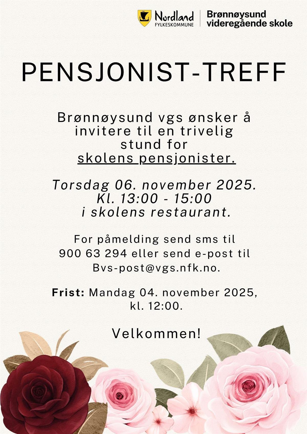 Brønnøysund vgs inviterer til en trivelig stund for skolens pensjonister.